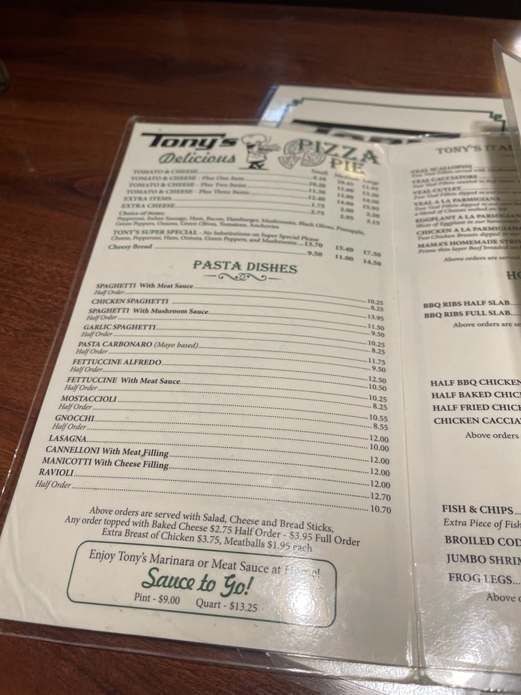 Introducing Tony's Pizzeria, a beloved local spot in Troy, MI, known for its authentic Italian dishes and delicious pizzas. The menu boasts a variety of options, from Tony's Famous Pizza with customizable toppings to savory pasta dishes like Chicken Spaghetti and Veal Scallopini. The restaurant offers a cozy and family-friendly atmosphere, making it a favorite among customers like Paul B. and Gary V. who rave about the excellent food and service. Reviews from patrons like Simona S. highlight the homemade sauce, dough, and real pepperoni, setting Tony's apart from chain pizzerias. Whether you're craving a classic pizza or a hearty Italian specialty, Tony's Pizzeria is sure to satisfy your taste buds and keep you coming back for more.